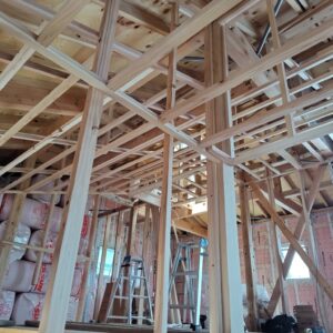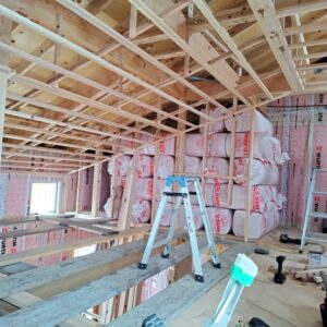 壁の気密シート施工が完了し、