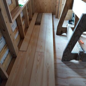 壁の一部にシナベニヤを張ってます。
