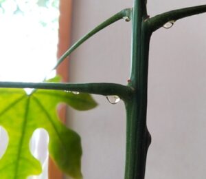 観葉植物の枝に水滴が💧