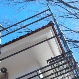 破風・軒天の塗り替えが完了し、外壁の塗り替えと進みます。