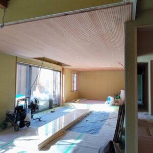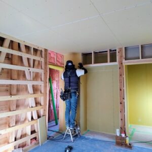 1階ボード施工が完了し、2階へと進んでいます。
