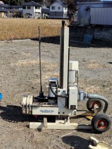 沈下に抵抗する力(地耐力)をもっているかを、調べる地盤調査がおこなわれました。