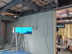 天井ボード施工中。