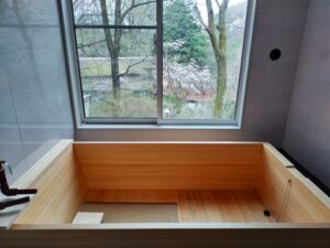 お湯をはればヒノキの香りが、四季折々の景色、夕焼けや星空を眺めながら、