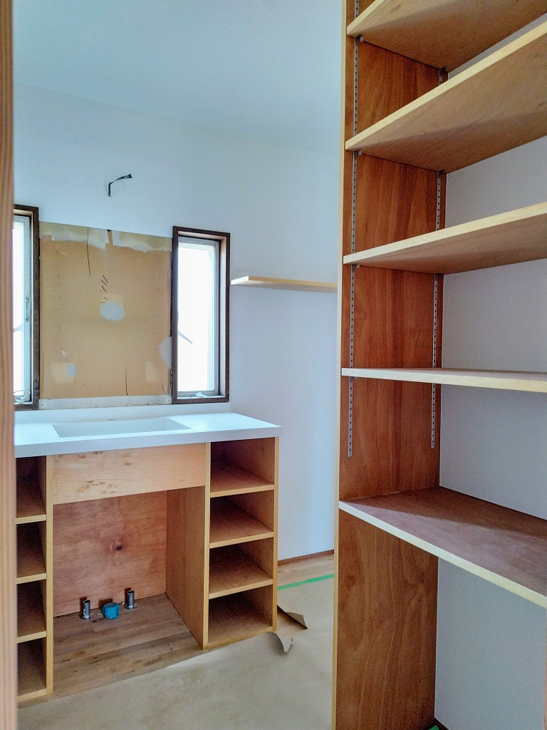棚板がつけられ、大工工事は完了です!