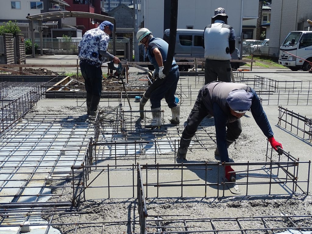 耐圧盤(底盤)という基礎の床面、コンクリートの打設がおこなわれました。